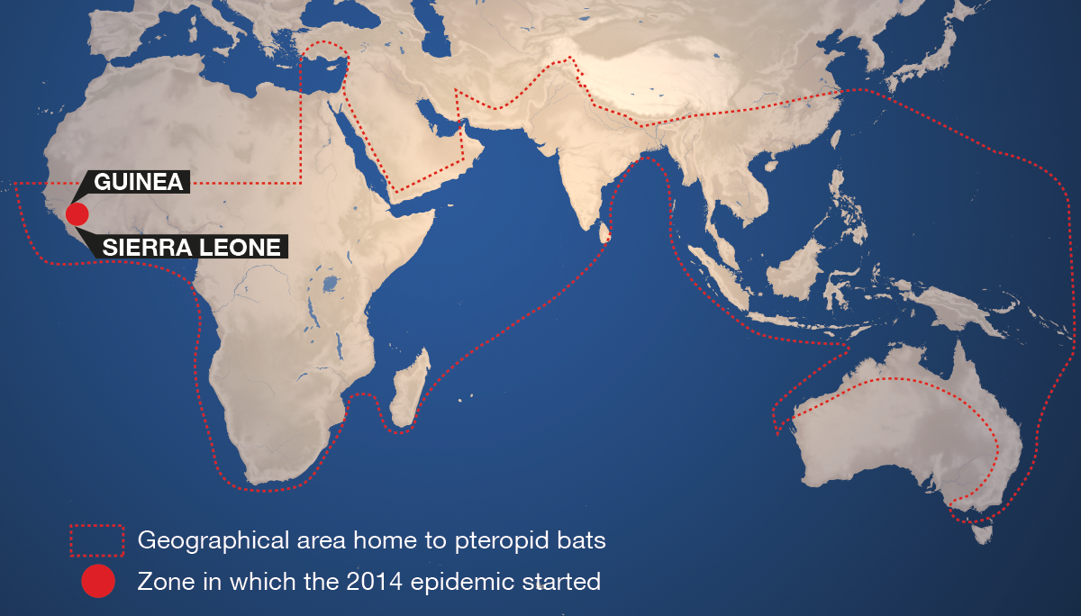 Although the origin of the virus is still unknown, fruit bats are considered to be the natural reservoir. The main carriers most likely to transmit the disease are gorillas, chimpanzees and antelopes. Contamination passes from animals to humans either through handling the flesh of these infected animals, or eating them, particularly if insufficiently cooked.
